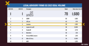 League Tables Q3, 2023: Lexence stijgt in ranglijst van dealvolume