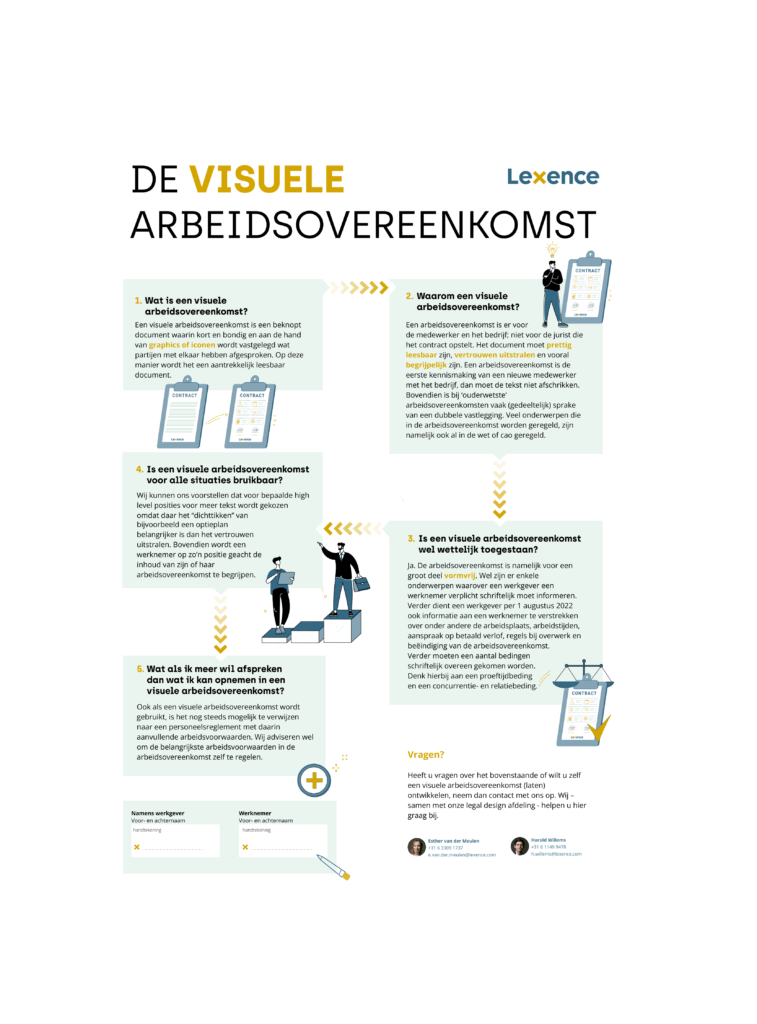 29 september 2022 – De visuele arbeidsovereenkomst wordt populairder. In dit document leggen Esther van der Meulen en Harold Willems uit wat het is, waarom het handig kan zijn en waar u op moet letten als u het wil gebruiken.